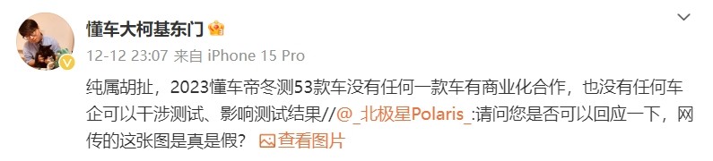 冬测风波后懂车帝曾回应称,所有参与车辆在整备后编队行驶出发,使用统一标准,符合用户冬季用车场景,不存在区别对待。