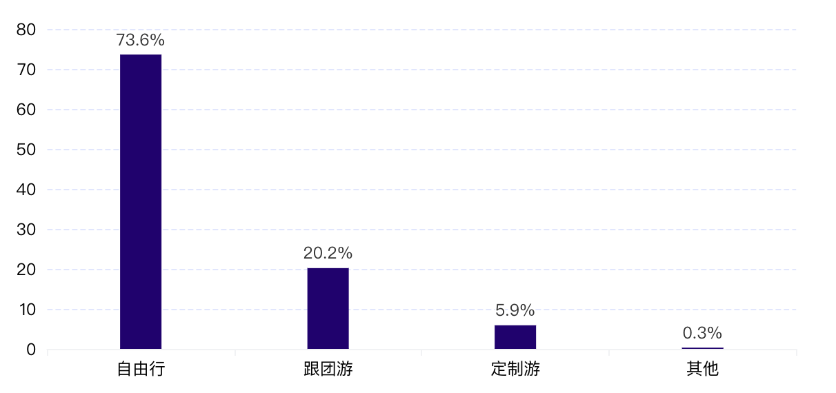 从目的地来看,2024年春节假期,跨省游将持续活跃,43.9%的游客计划跨省过年;32.3%的游客计划在省内游玩。至于出游方式中,计划自由行的游客占比最高,为73.6%;其次是跟团游(占比20.2%)和定制游(占比5.9%)。